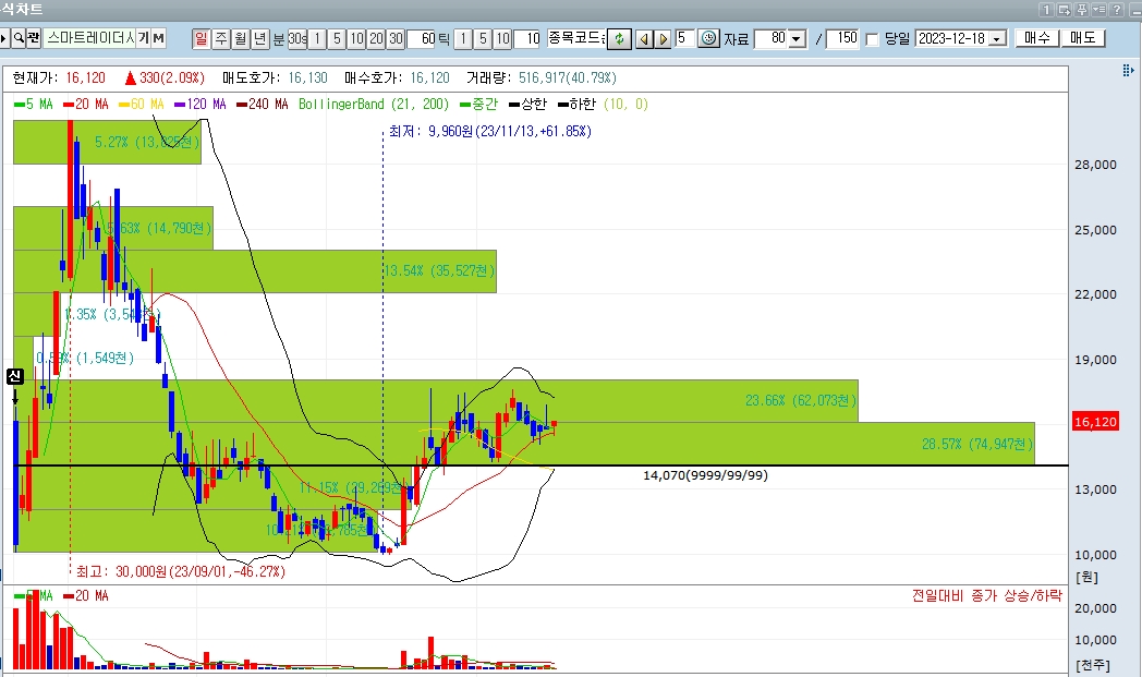 2023년 12월 18일 현재주가는 16,120 원이며 2024 CES 참가기업으로 자율주행테마 뉴스에의한 큰 상승도 가능할 것으로 보인다.