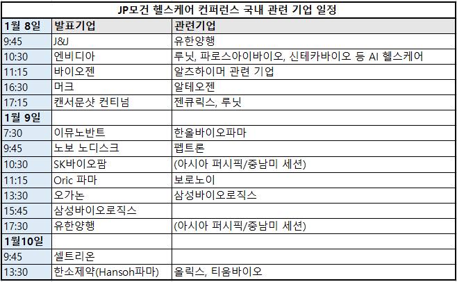 2024 JP모건헬스케어 컨퍼런스 참여 중대형 기업리스트