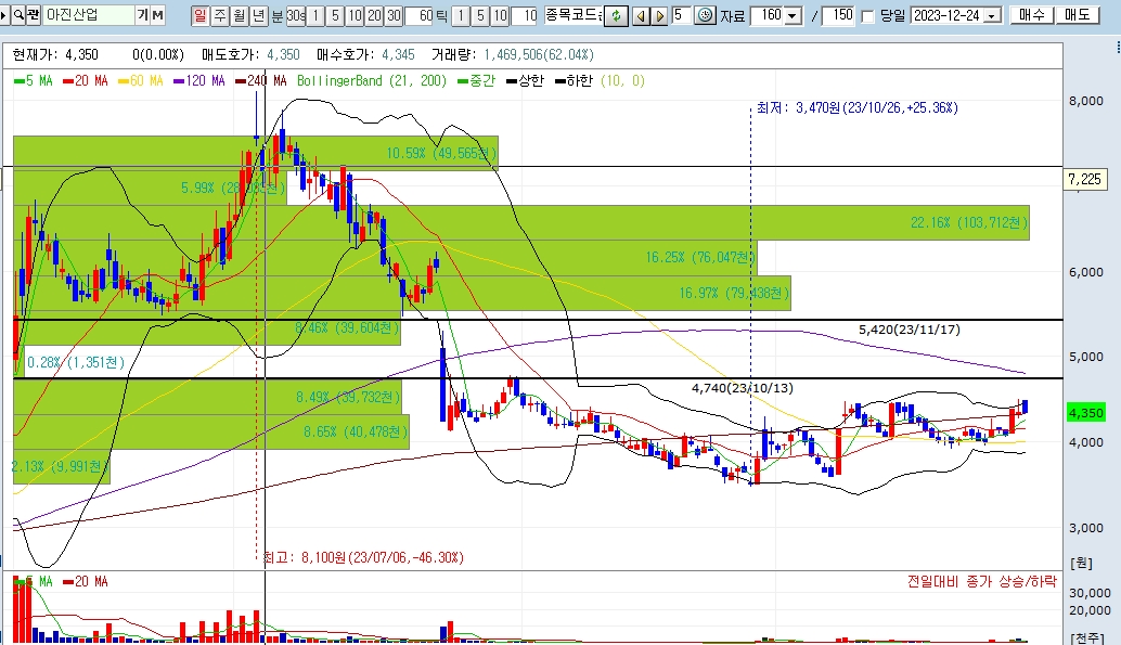 매수구간 4,100 원~ 4,300 원 분할매수, 손절가 4,000 원으로 개인적으로 전략수립. 단기수익률 15~20% 목표로 진입 대기중.