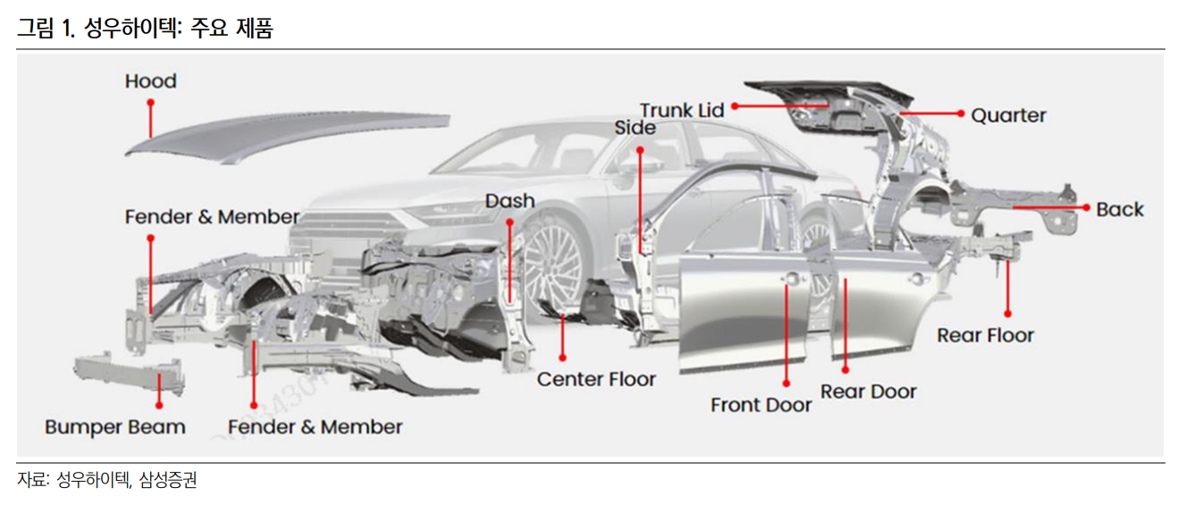 중국관련 매출경험과 현대차그룹에 전기차용 차체공급을 진행하고 있음. 성우하이텍은 전기차시대 '차량경량화' 트렌드에 맞추어 초고장력강, 알루미늄, 탄소섬유, 유리섬유 같은 다종소재를 조합하여, 성형하고 접합할 수 있는 기술을 갖추고 있음. 또한 현대차그룹에 배터리케이스 2차종 수주이력이 있으며 미국과 멕시코 공장에 해외업체 전기차부품 OEM 수주가능성이 높음.