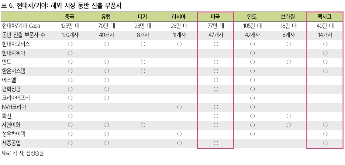 동사는 범퍼레일, 사이드멤버, 차체바닥, 외부패널 등을 생산하여 공급하는 업체입니다. 현대기아차 매출 의존도 90% 로 중국,인도,유럽,멕시코,러시아 등에 동반 진출하였습니다.