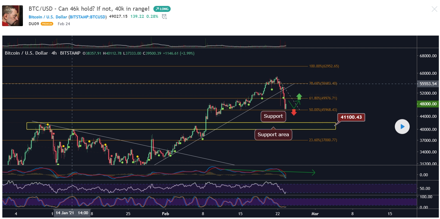 2. 현재 저점인 45000달러 붕괴시 40,750 달러 선까지 내려갈것이며 최대 33,000 달러선까지 내려갈 수 있다.